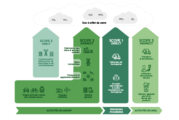 | Scope 1 | Scope 2 | Scope 3 (amont) | Scope 3 (aval) | |